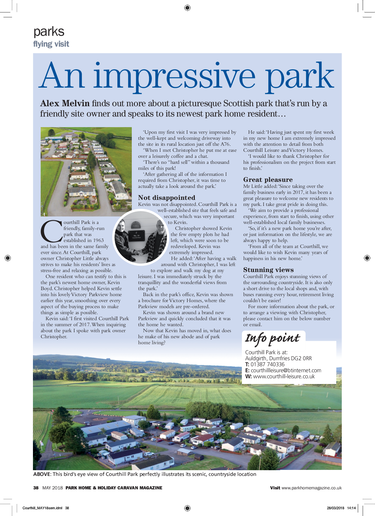 This article from Park Home & Holiday Caravan magazine tells the story of the park’s newest home owner, Kevin.